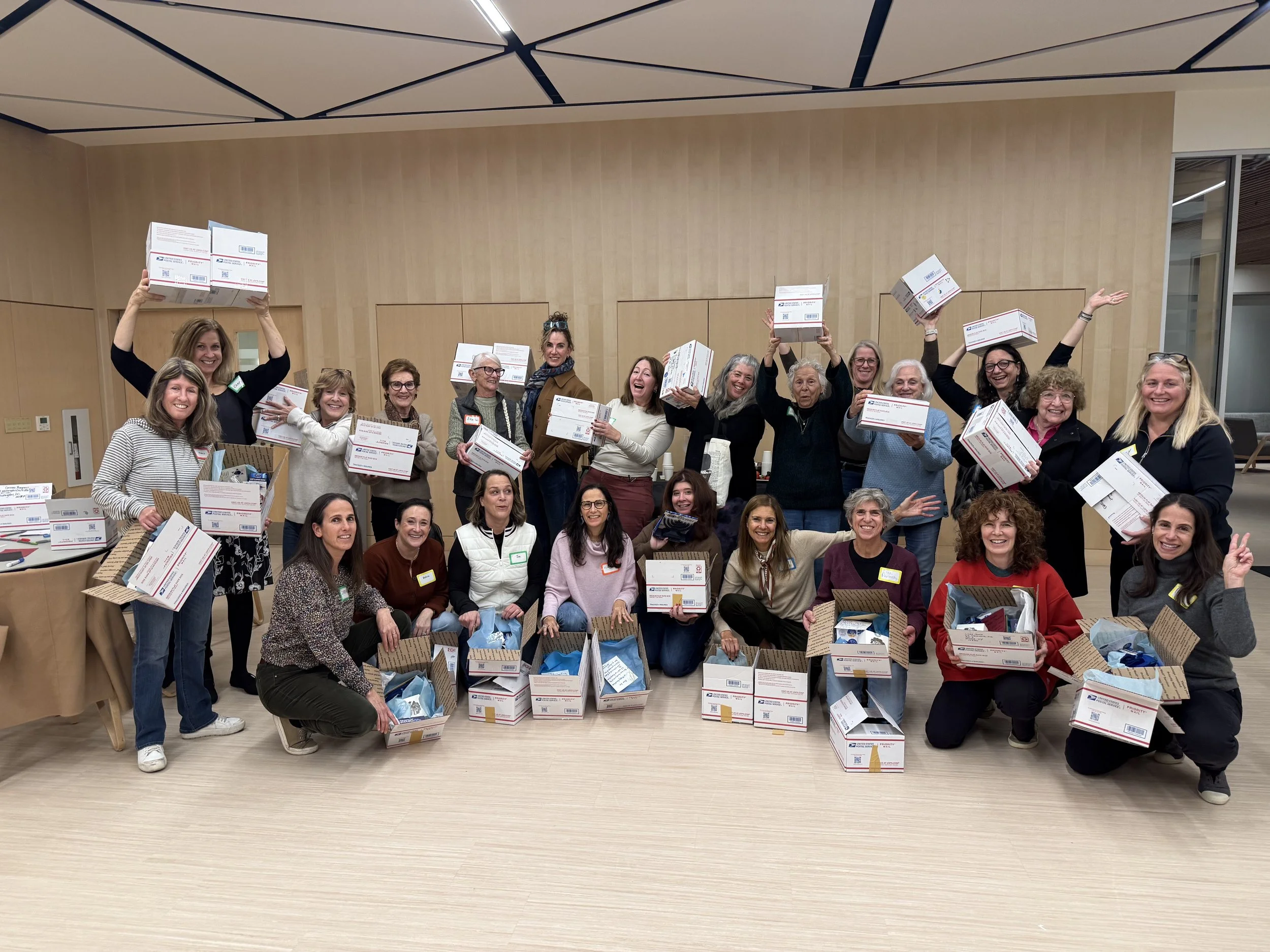 At the Chanukah College Care Package gathering on December 1, 2025, 35 women came together to assemble 54 care packages